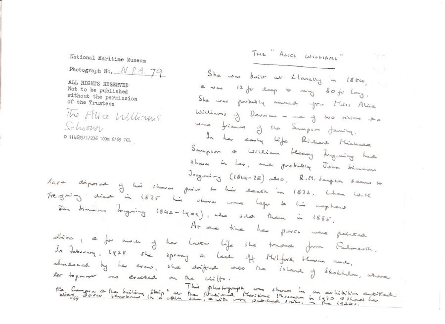 Sketch of schooner ‘William Henry’ built by Ferris 1853/4.