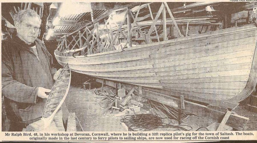 Charlie Trebilcock and Tom Hichens caulking bottom of Trebilcock’s family barge ‘Mary’